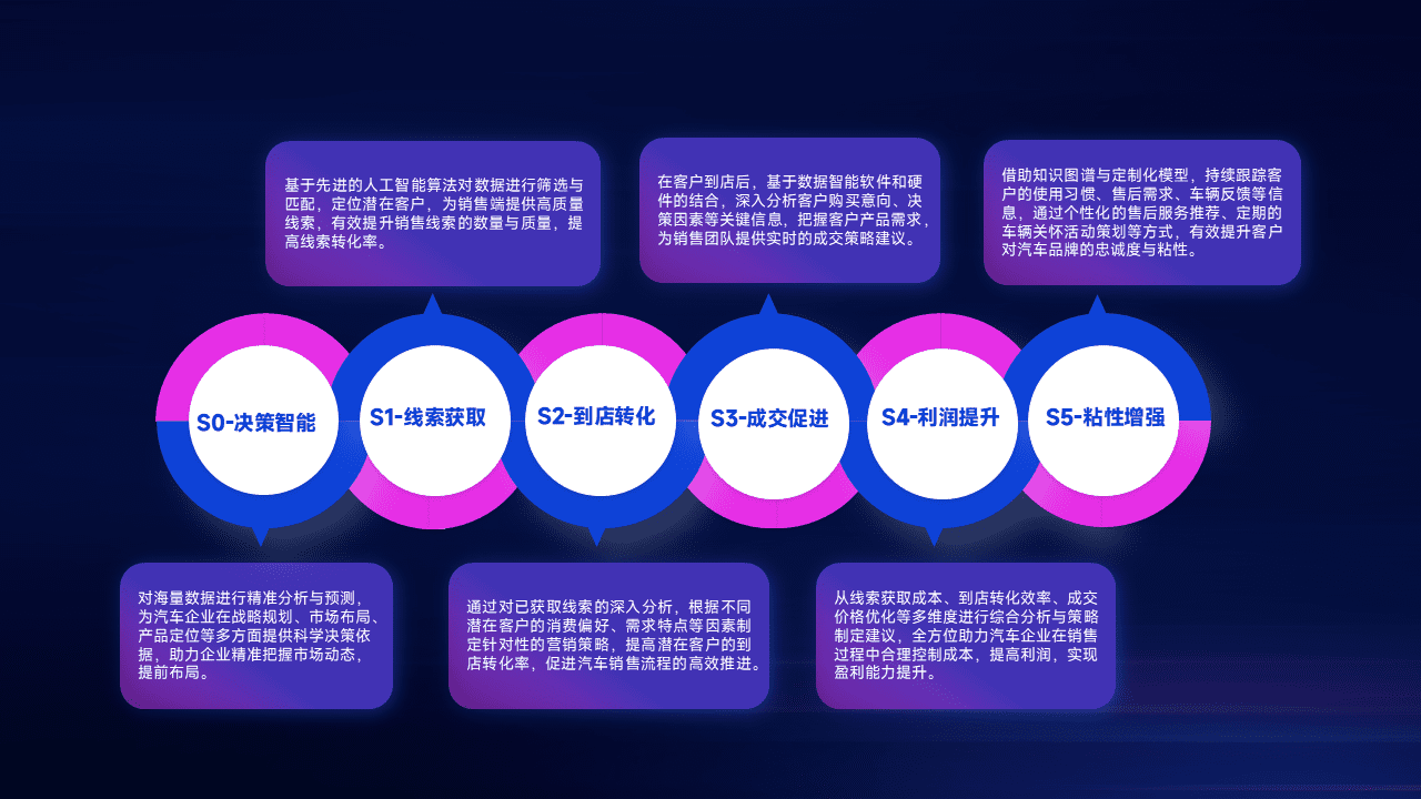 通过拓宽潜在客户来源、、、、优化线索分配并提高到店转化率,,以增强销售效率。。。。同时,,利用线索数据不断优化分析模型,,,有效提升转化率,,扩大营销影响力。。
